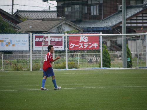 GKの選手の横でボトルを受け取っているのか渡しているのか…