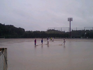 手前はグラウンド片隅の大きな大きな水溜りですね~