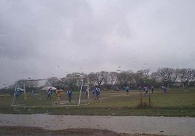 ちょうど、試合してた、雨降る中…。