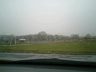 様子を見守ってみた。雨だったので、グランドのそばまで