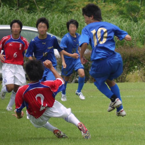 サッカー部員が、校庭に出てきていました。