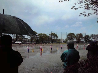 グラウンドはすでに水たまりがいっぱいで、